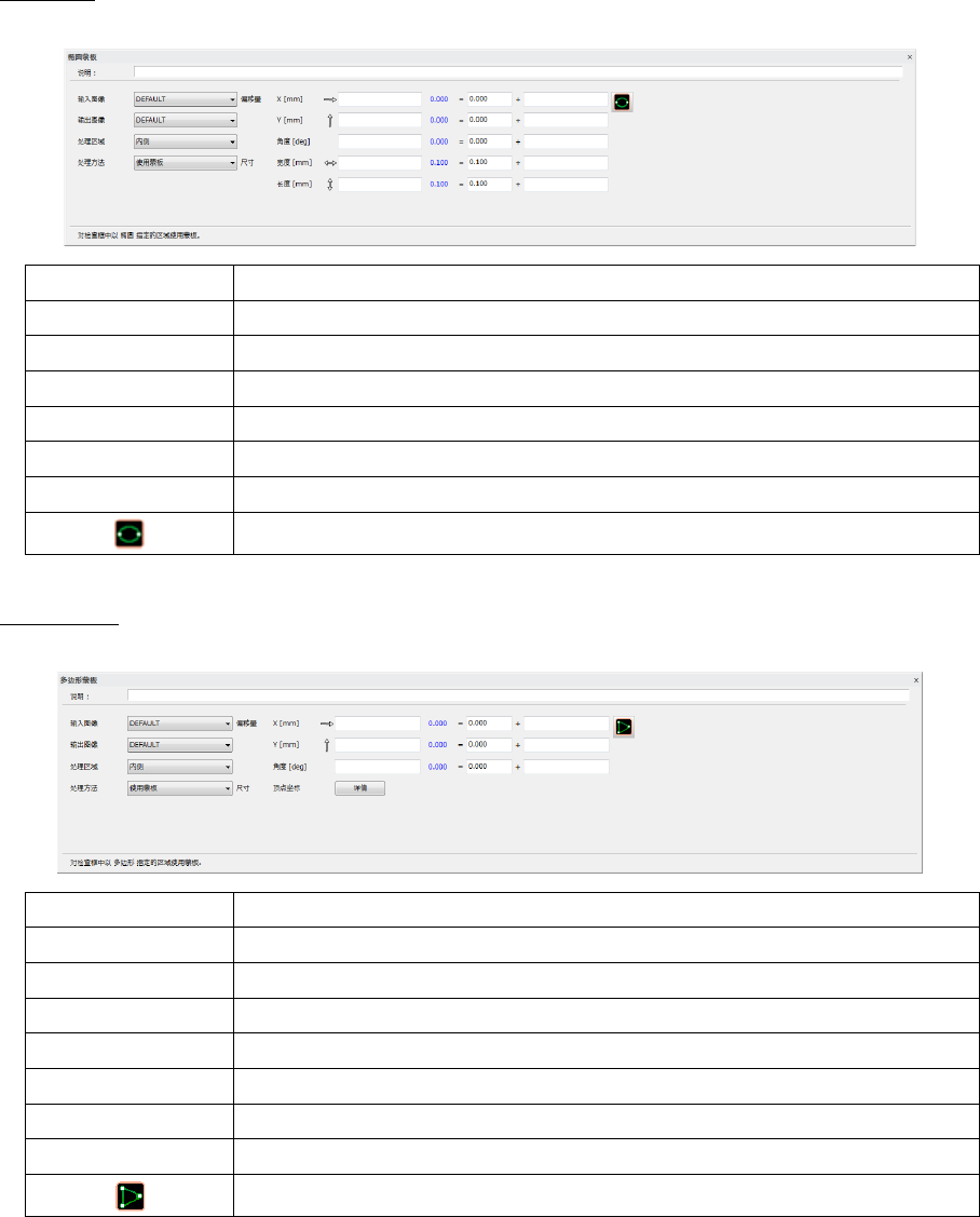 第 4 章 操作 篇 4- 6. 进程模式 191 4 矩形过滤 对在输入图像中指定的 矩形区域进行过滤。 说明 可输入注释。 输入图像 指定输入源的图像型本 地内存。 输出图像 指定输出目标的图像型 本地内存。 处理区域 在[内侧],[外侧] 中指定过滤区域。 处理方法 在[用黑色填充],[ 用白色填充],[使 用蒙板]中指定过滤 方法。 偏移量(补正值) 指定矩形过滤框的中心 坐标。 大小 指定矩形过滤 框。 可在放大显示区域用鼠 …