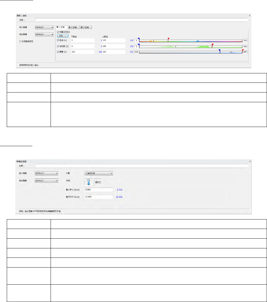 在[二值化区域],[非二值化区域]中指定过滤对象。