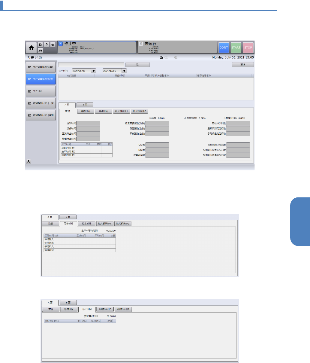 第 4 章 操作 篇 4- 9. 记录 284 贴片机统计 1 贴片机统计 2