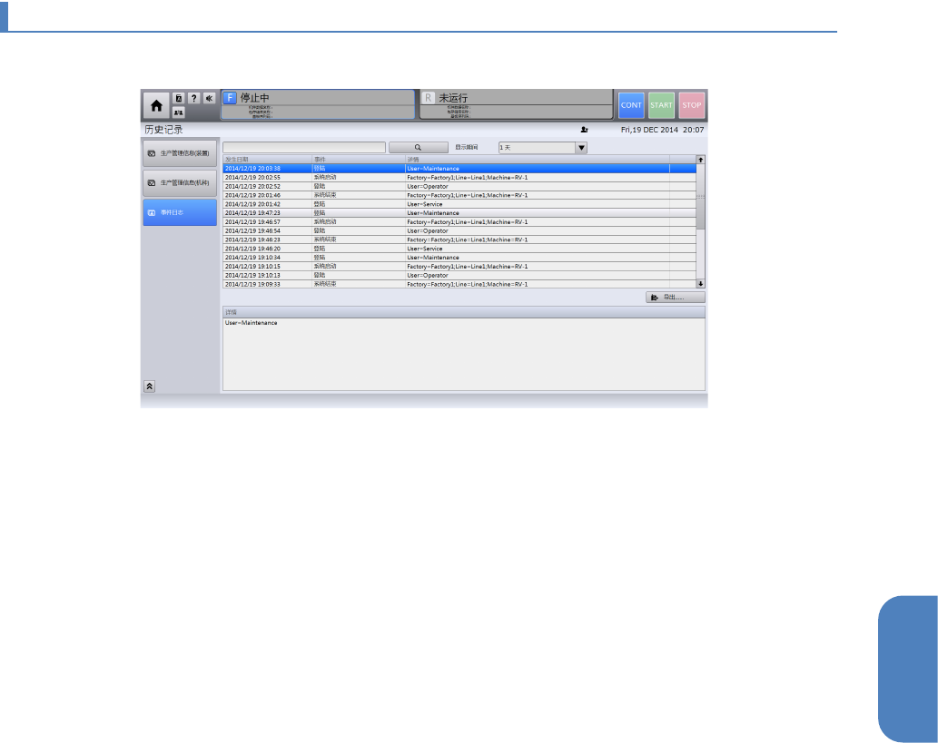 显示各机种的生产管理信息历史记录。