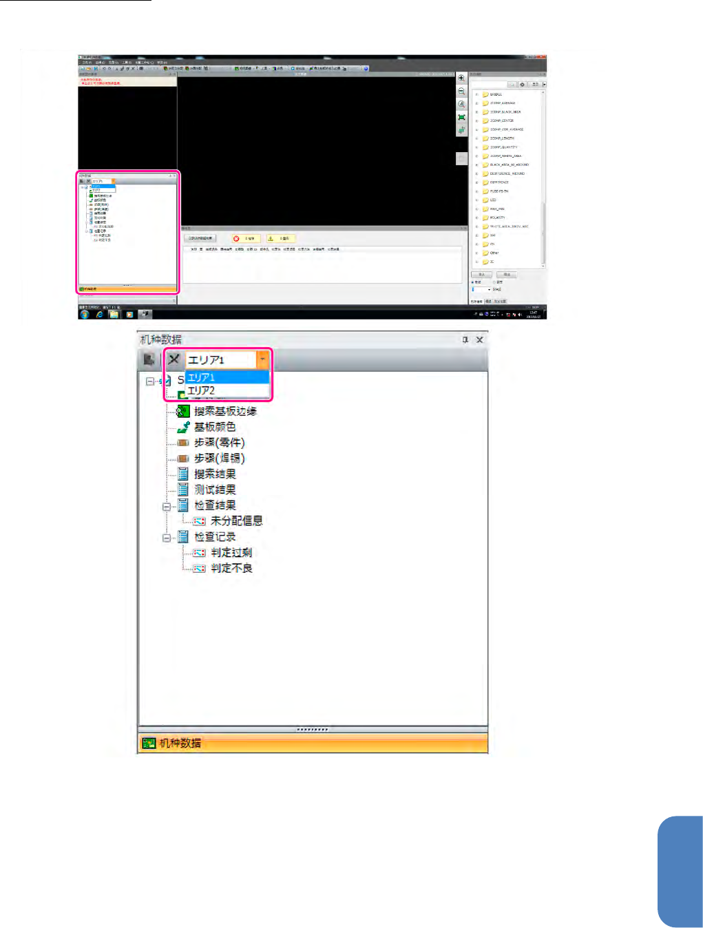 可从机种数据编辑画面的区域选择下拉菜单中选择编辑对象区域。
