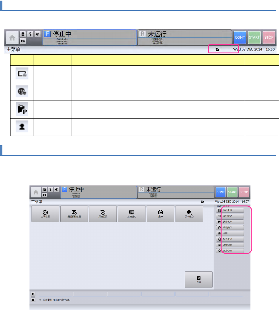 显示当前选择的主菜单名与下一图标以及日期时间。