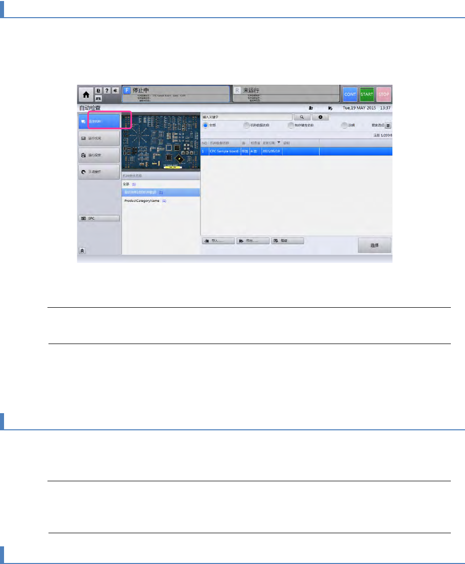 第 4 章 操作 篇 4- 3. 自动运转 的步骤 15 4 4-3- 5. 运转 条件的 设定 可以设定运转 模式 ,动作模式,判定 模式,实时图像显 示,批号等参数。 运转 模式的 设定 1 在[自动检查]画面中触摸[运行设定]。 2 在[运行模式]中选择要设定的运转模式。 普通 进行基板搬送,基板 检查 ,结果判定 ,结果反映等处 理。 通过 与选择机种的无关,在 不 检查 基板的情况下进行基板搬 入到搬出。 暖机( aging …