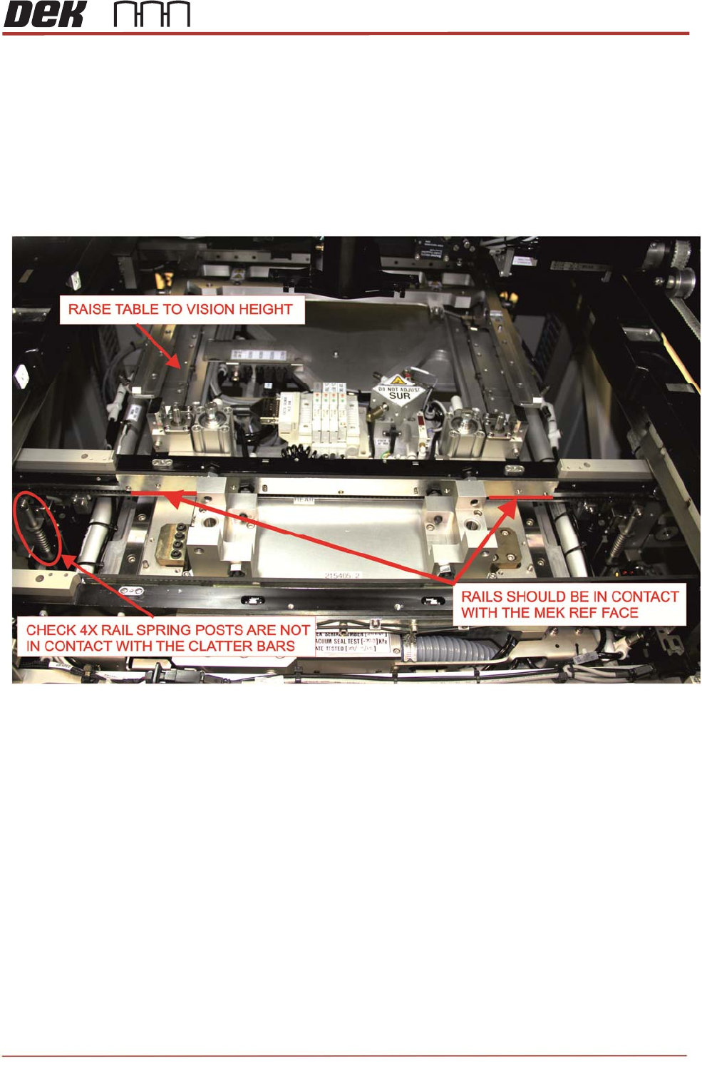 30. Check that both front and rear rails are resting on the MEK and not on the clatter bars.