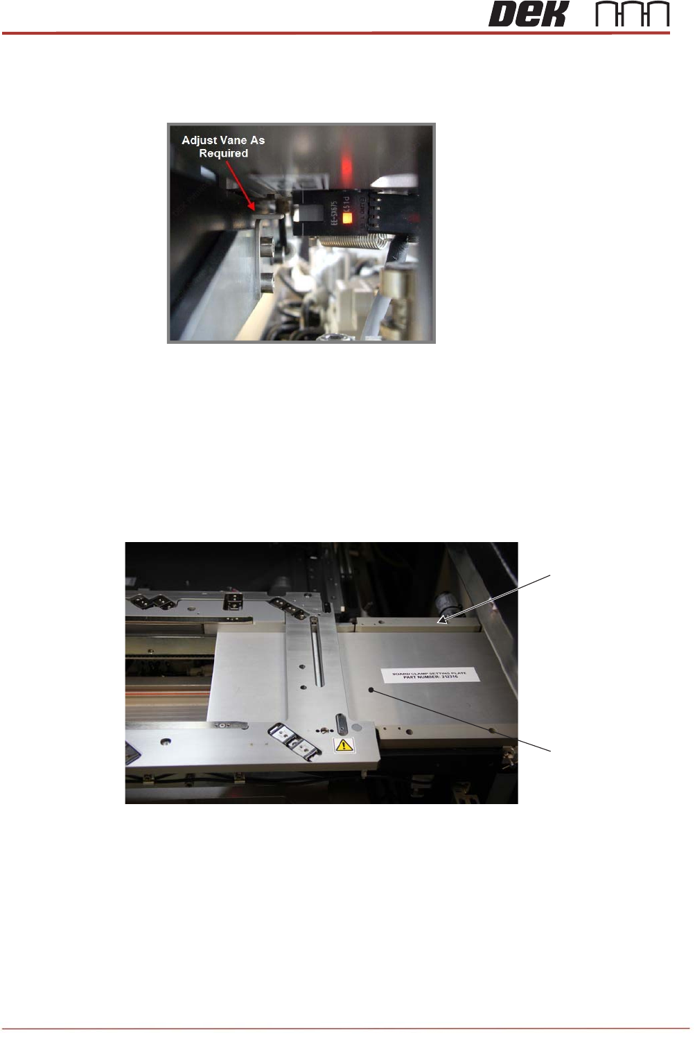 85. Slide the board clamp setting plate (212316) onto the transport rails and push the