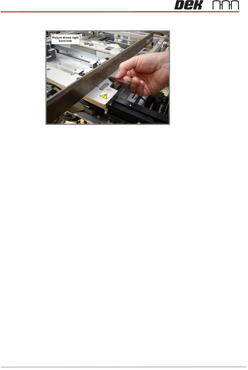 48. By adjusting the rail drive belt manually, move the rear rail into contact with the buttons