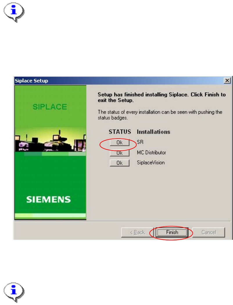 Installation Manual, Station Software Version 603.01 Issue 11/2006 Finalizing the installation Note: The status only lists the programs that have just been installed. If, for instance, the current version of SIPLACE Visi…