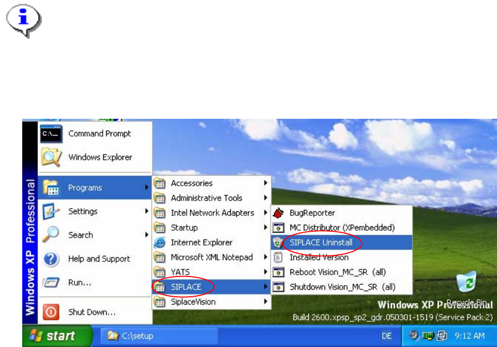 The installation program now uninstalls the SIPLACE software including the SIPLACE hotfixes, SIPLACE