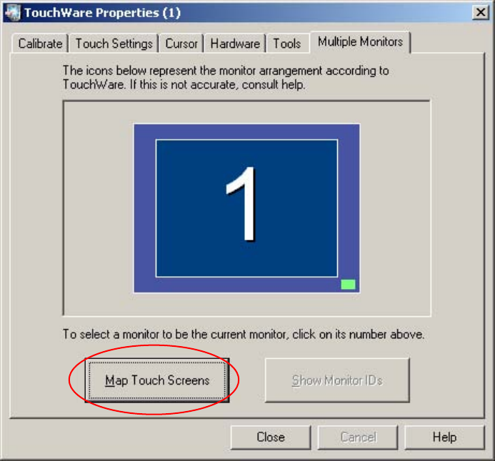 → Klicken Sie auf die Schaltfläche Map Touch Screens.