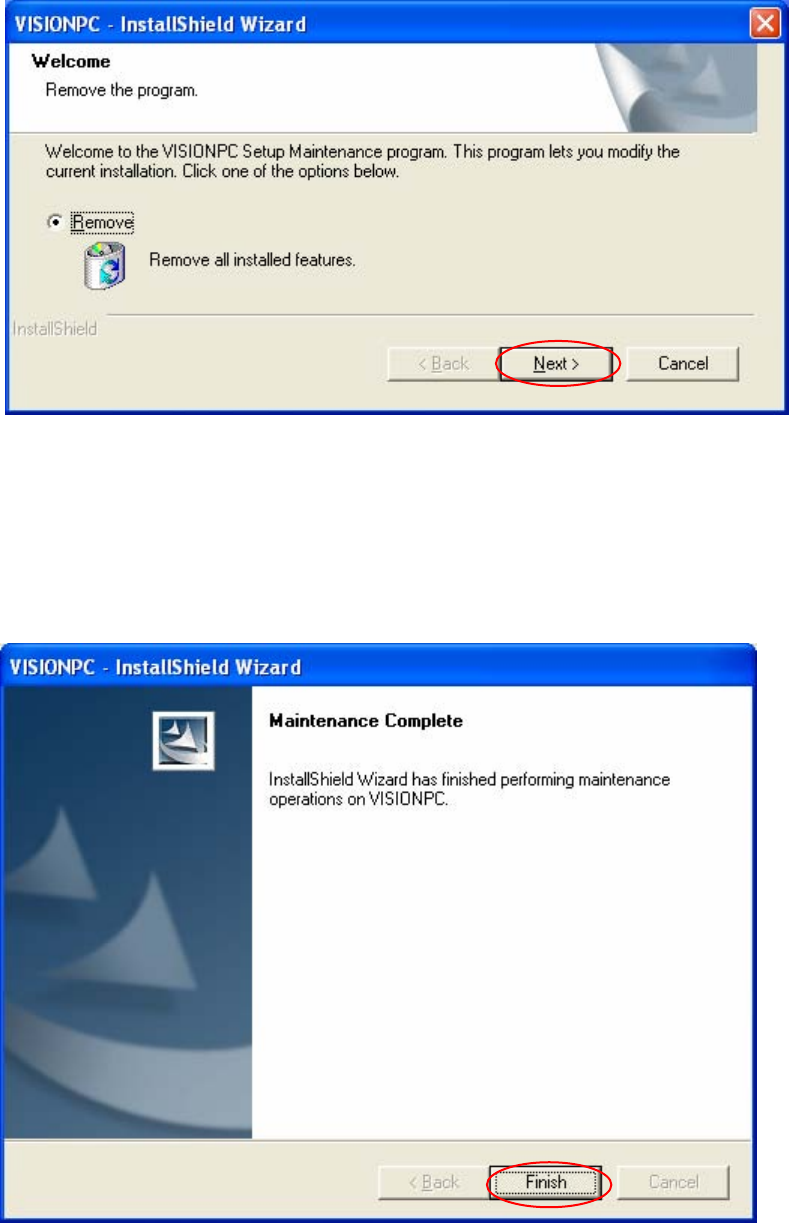 Die Visionrechnersoftware ist nun ordnungsgemäß deinstalliert.