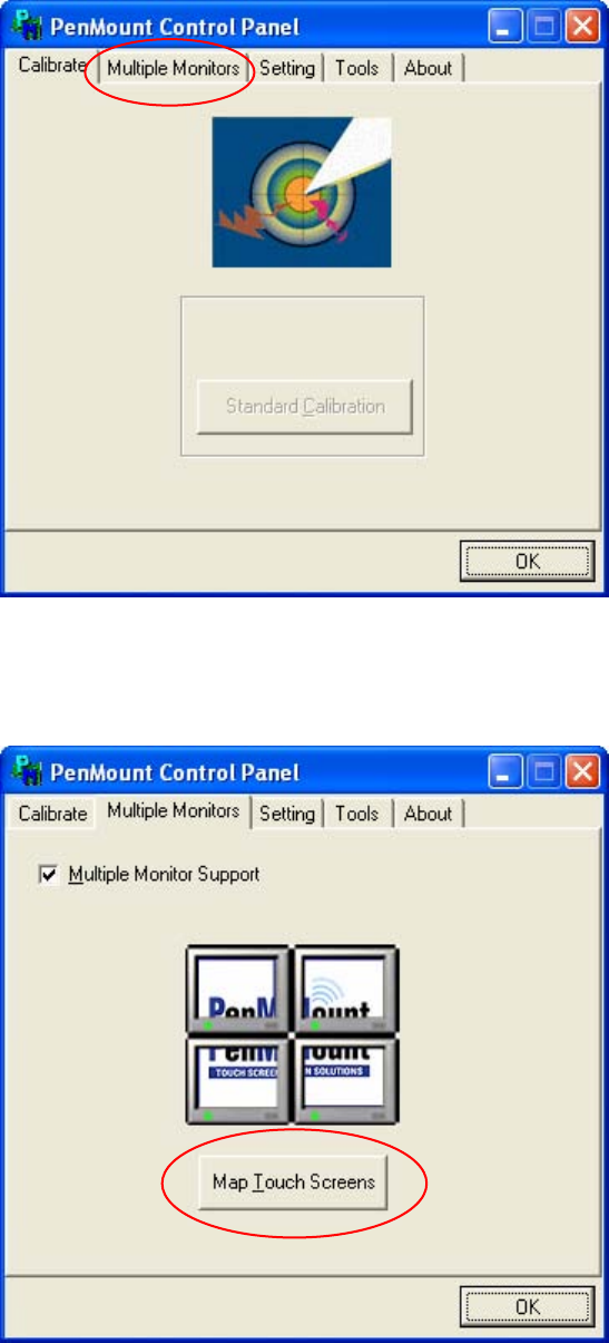 Fig. 4-10: PenMount Control Panel – Multiple Monitors tab