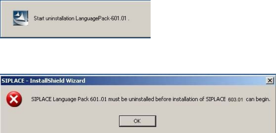If Language Pack 601.01 is still installed on the computer, uninstallation is started automatically.