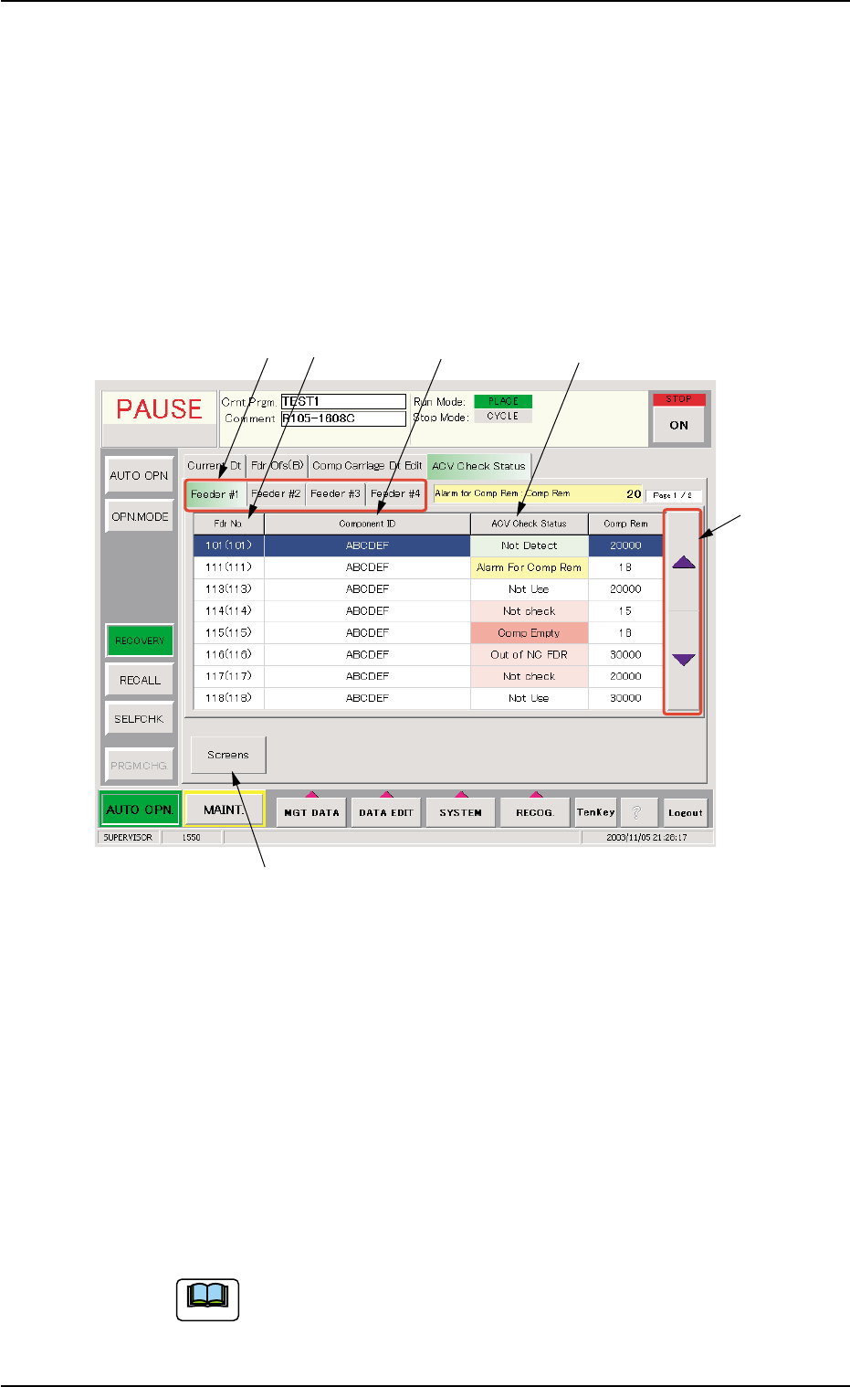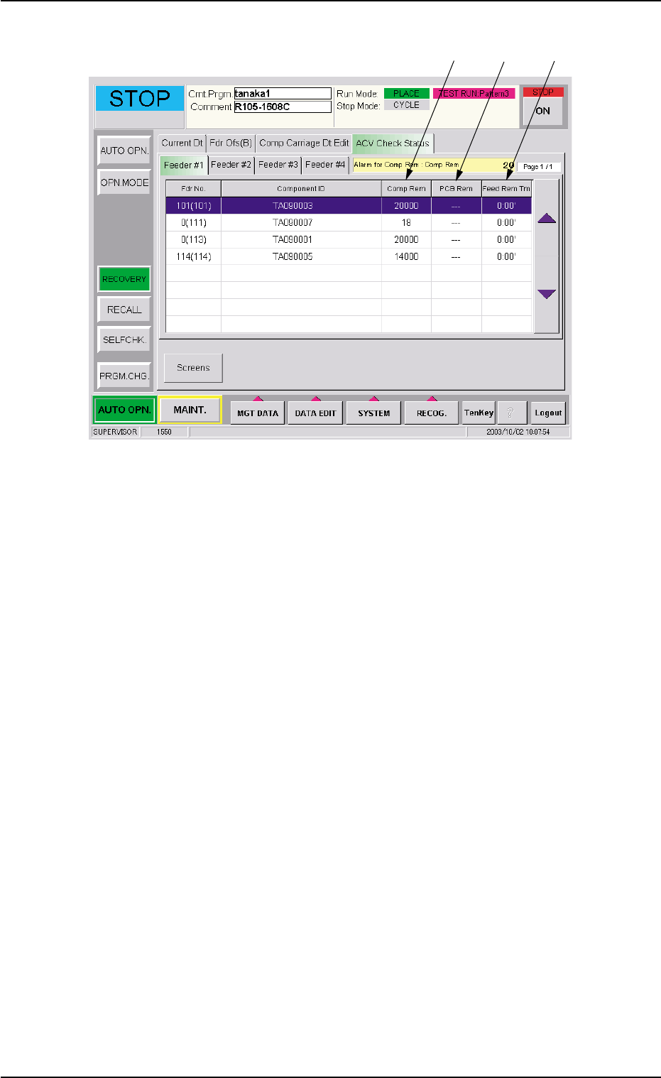 Displayed are the feeder Nos. used for the current program and the