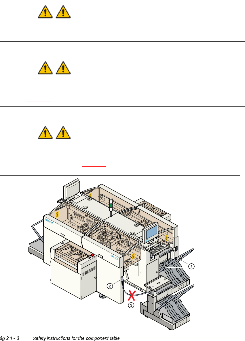 2 Operational Safety Adjust men t Ins tru ct ion s SIPL ACE H S-50 2.1 Safety Instructions E dition 12/00 22 6DIHW\,QVWUXFWLRQVIRUW KH&RPSRQHQW7 DEOHV W A RNING Never put your ha nds into t he nar row gap …