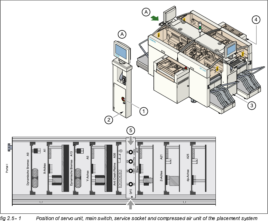 The placement system is powered with 3 x 204 VAC (USA version) 3 x 230 VAC, 3 x 380 VAC,