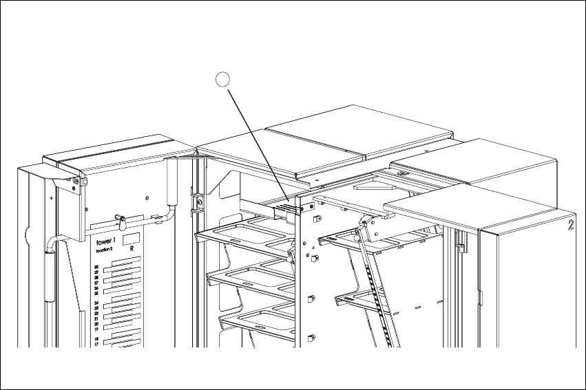 元件塔 1 的防護門後㈲㆒個文件保存格。在這裡您可以找到機器的相關文件,像是㈰誌簿、設定記