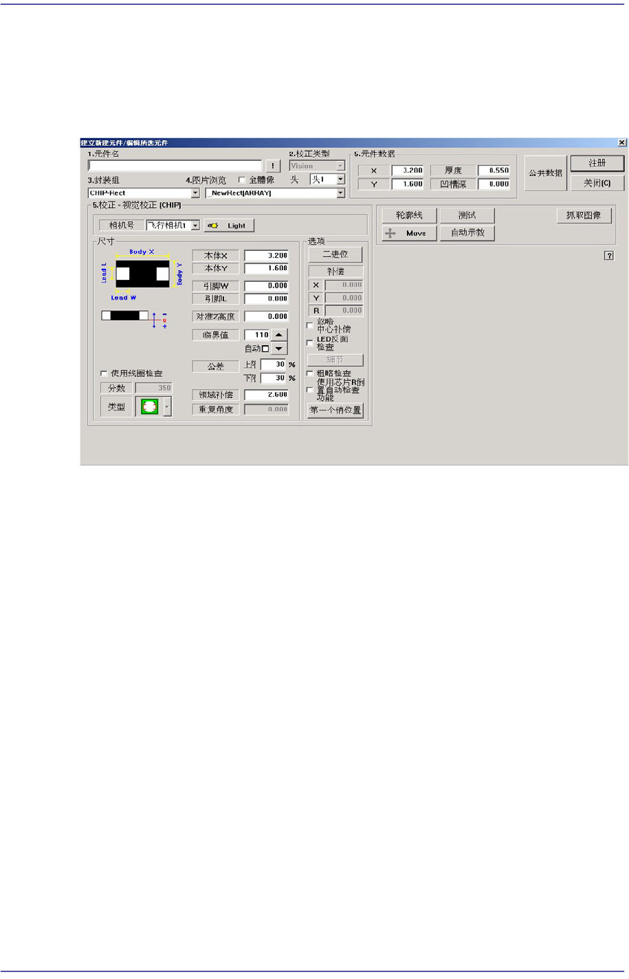 显示在<2. 校正类型>和<3. 封装组>选择的数据相对应的部品数据清单。