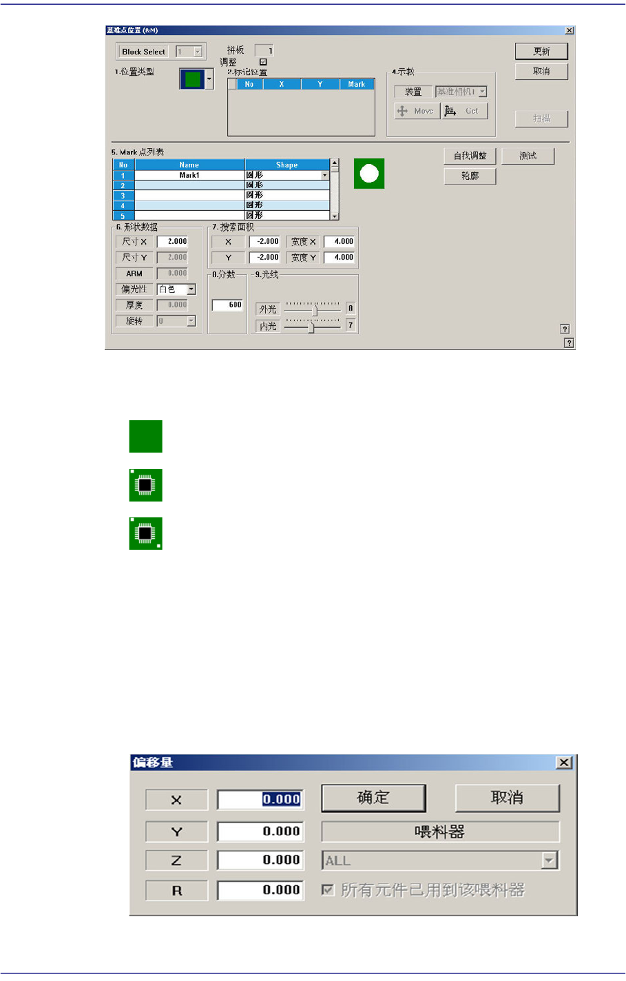 贴装点上有基准点标记时,设定基准点标记的数据。单击此按钮时显示如下的