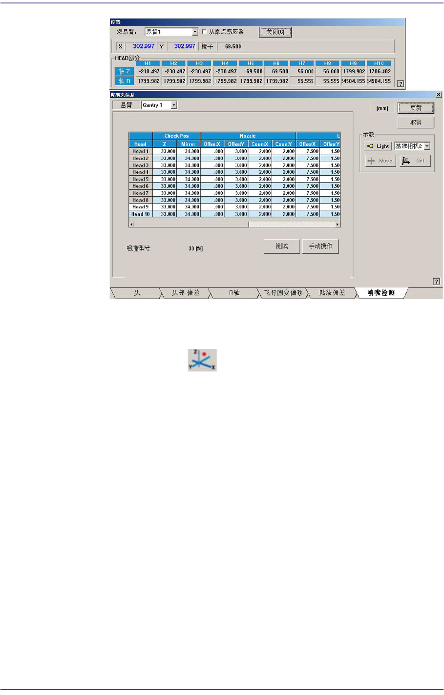 2) 在Nozzle Check TAP对话框单击<手动操作>键,执行“手动控制”对话