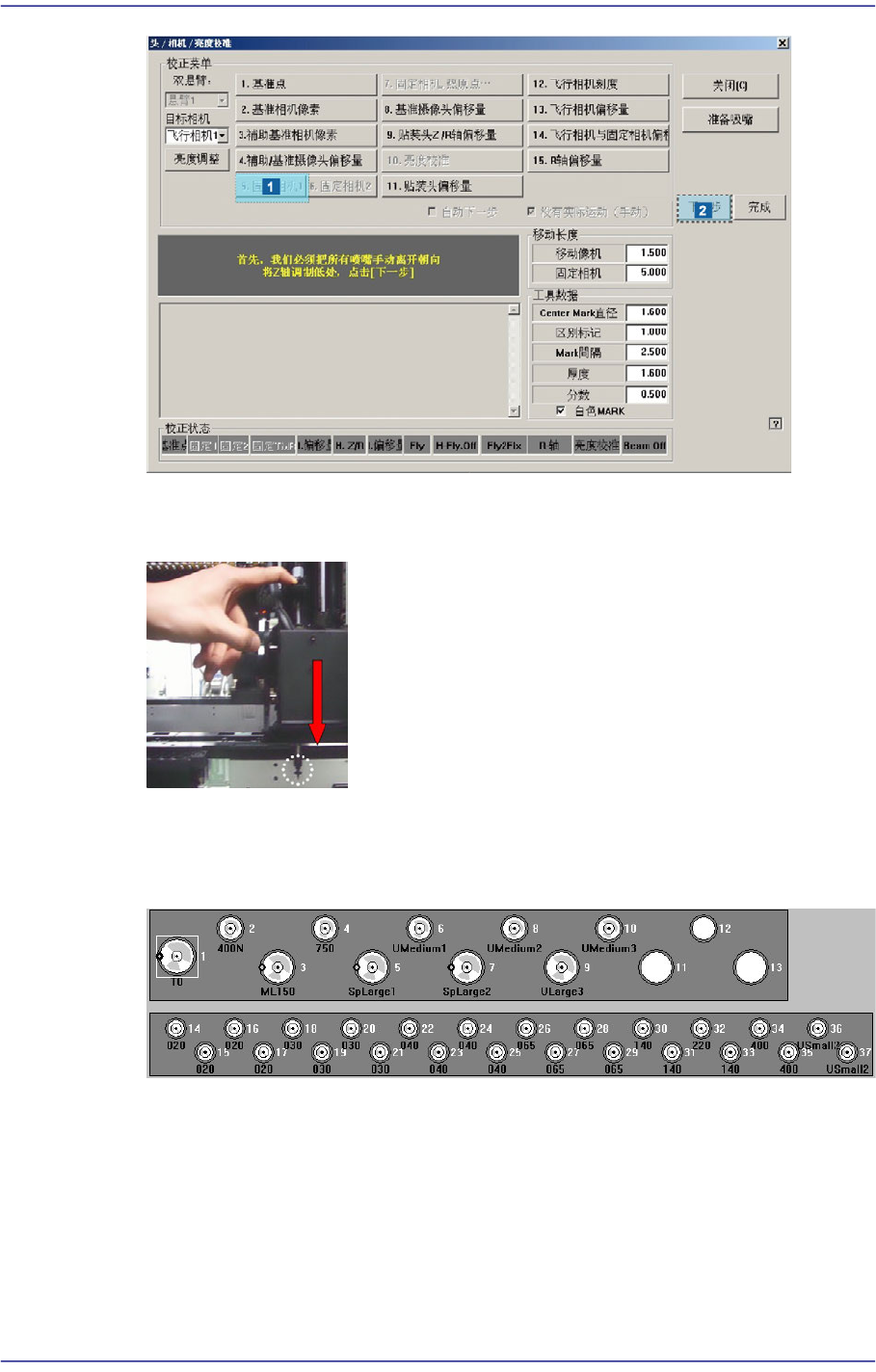 选择要Calibration的项目。 按特定项目的按钮则在消息窗依次显示必要的说明。