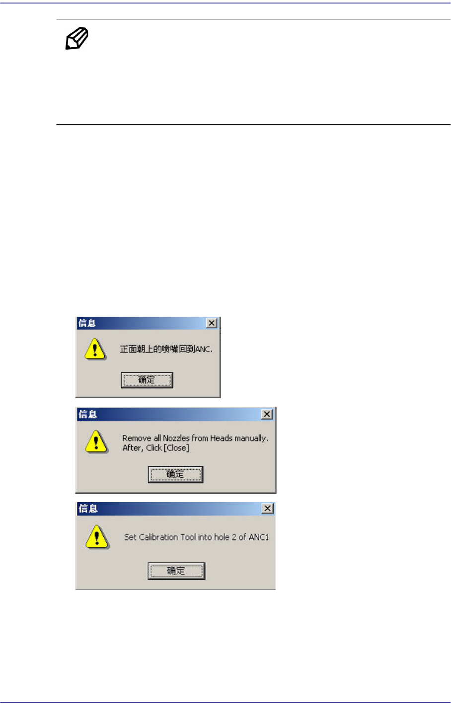 3. 显示“请检测和记录喷嘴CNT0到 ANC1-2洞。首先,我们必须把所有喷嘴手动