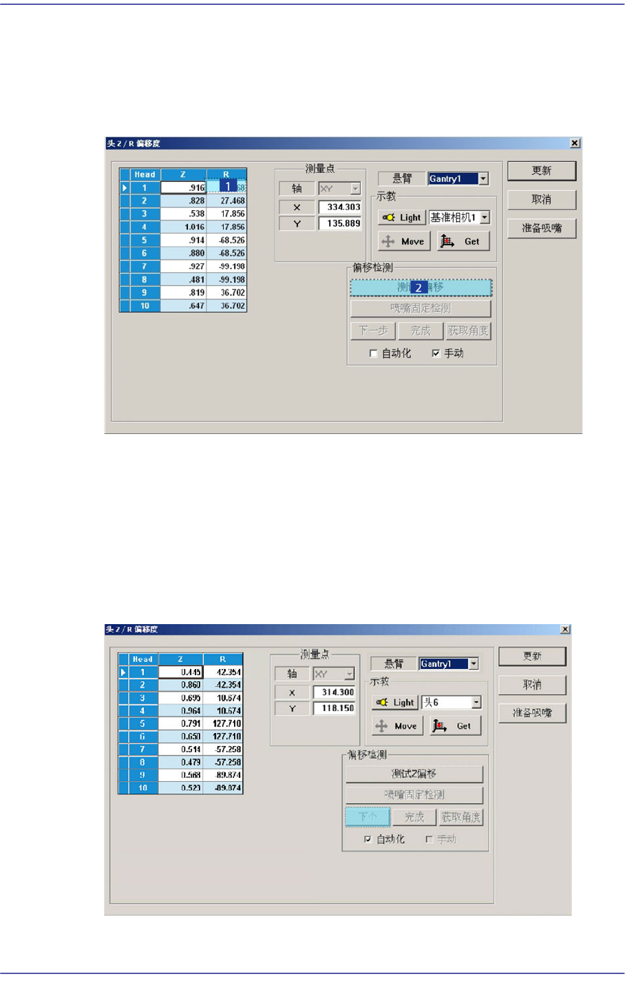 2. 在<Grid> 领域点击要执行校正Head的R轴,再点击 <喷嘴固定检测>按钮。 (在