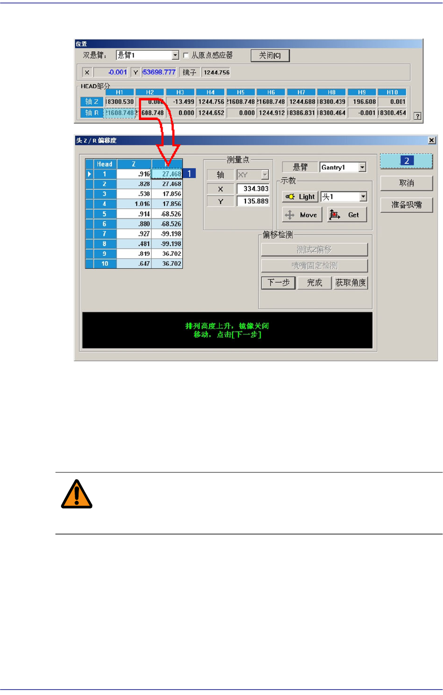 吸嘴,拉下磁头的Z轴请点击 <下个>按钮。