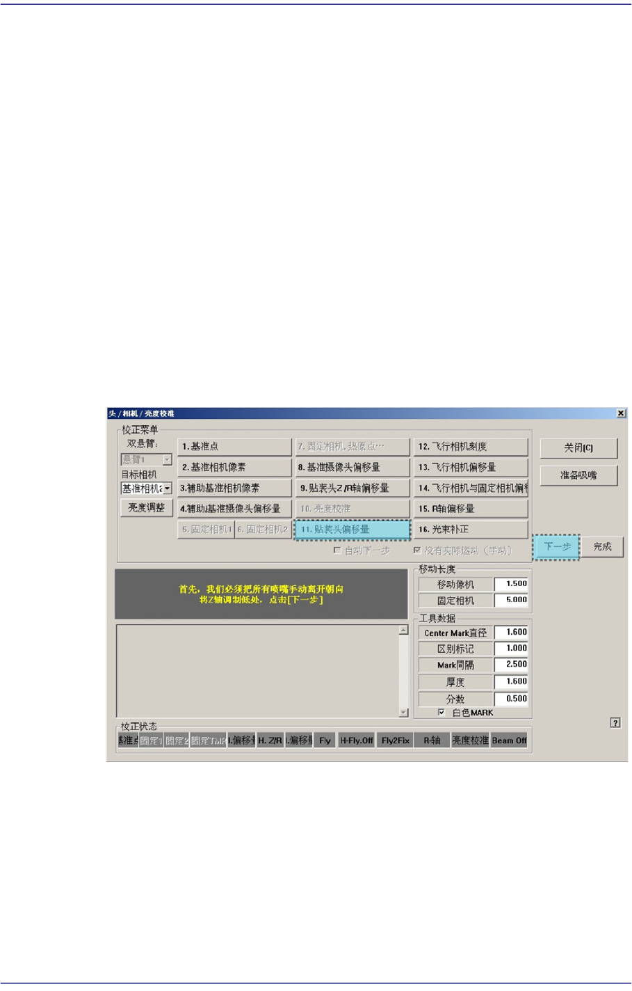 校正时,虽然对当前被选的Head自动更换吸嘴,但要点击<下个>按钮才能执行