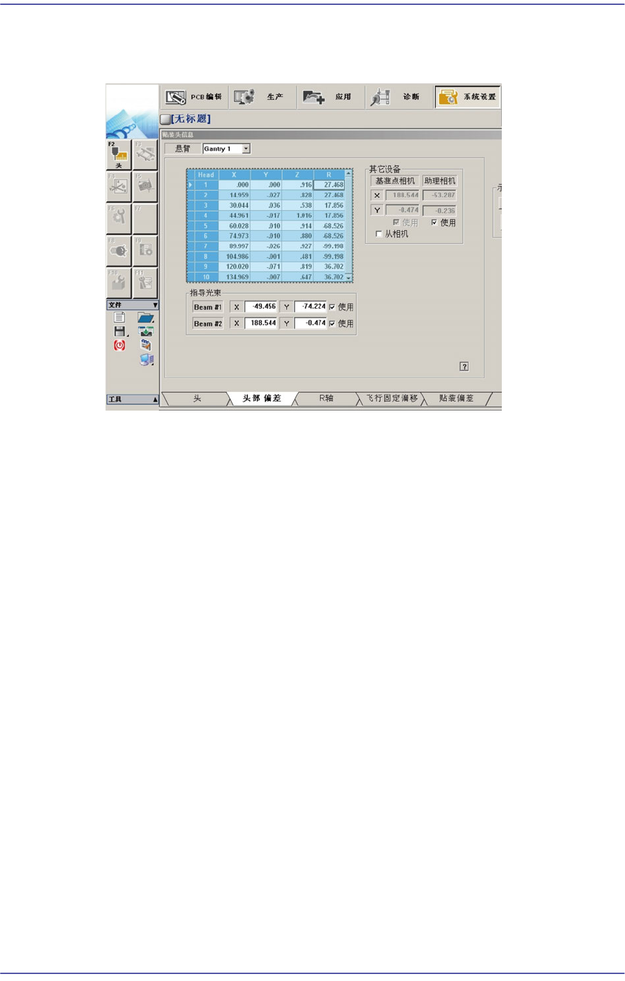 选择<没有实际运动(手动)> 校验框后,执行校正会在各Head手动插入吸嘴,