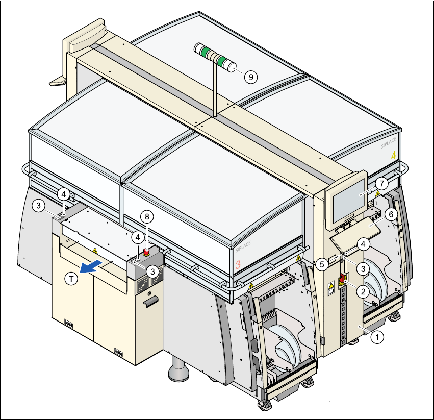 (9) 指示燈 (T) PCB 輸送方向