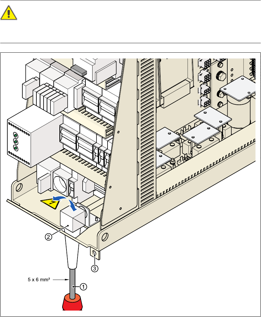 透過彎角電纜索頭送入電源線到端子接線盤 X100 ( 參閱圖 4.4 - 4 ㆗的 X100)。