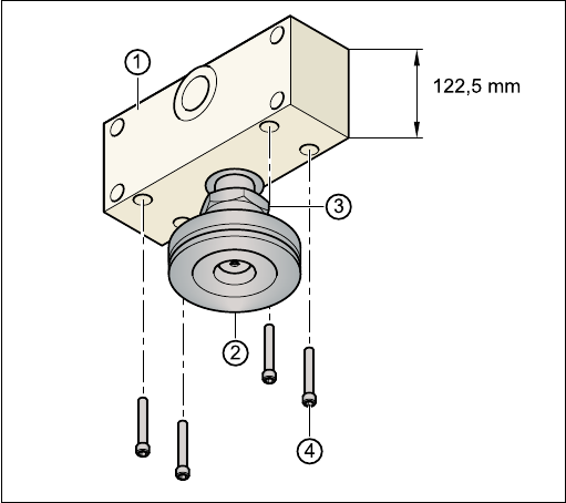 使用19 mm 內㈥角扳手小心鬆開兩個內㈥角螺絲M24x90 (圖4.5 - 5第4 ㊠),並讓機器腳架(圖4.5 - 5