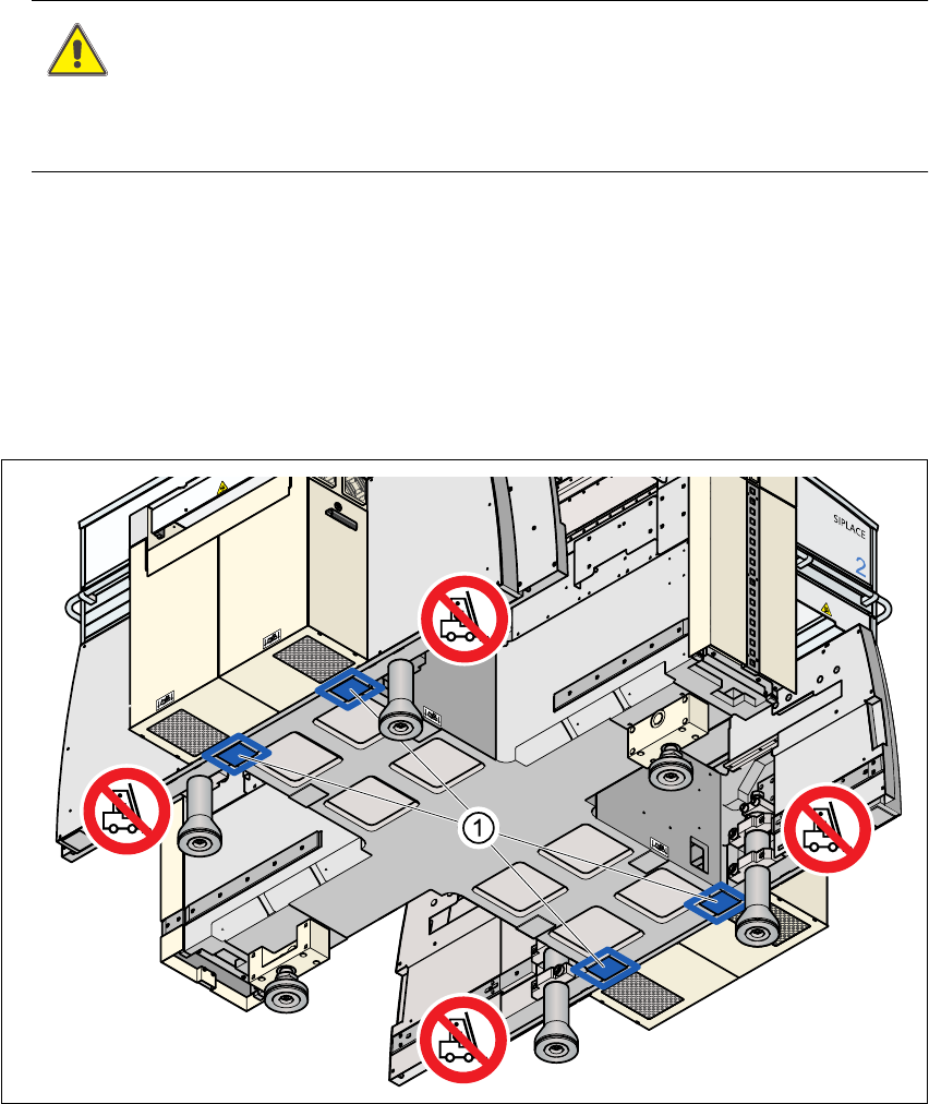 用堆高叉將取置機置於生產線㆗的可用位置。
