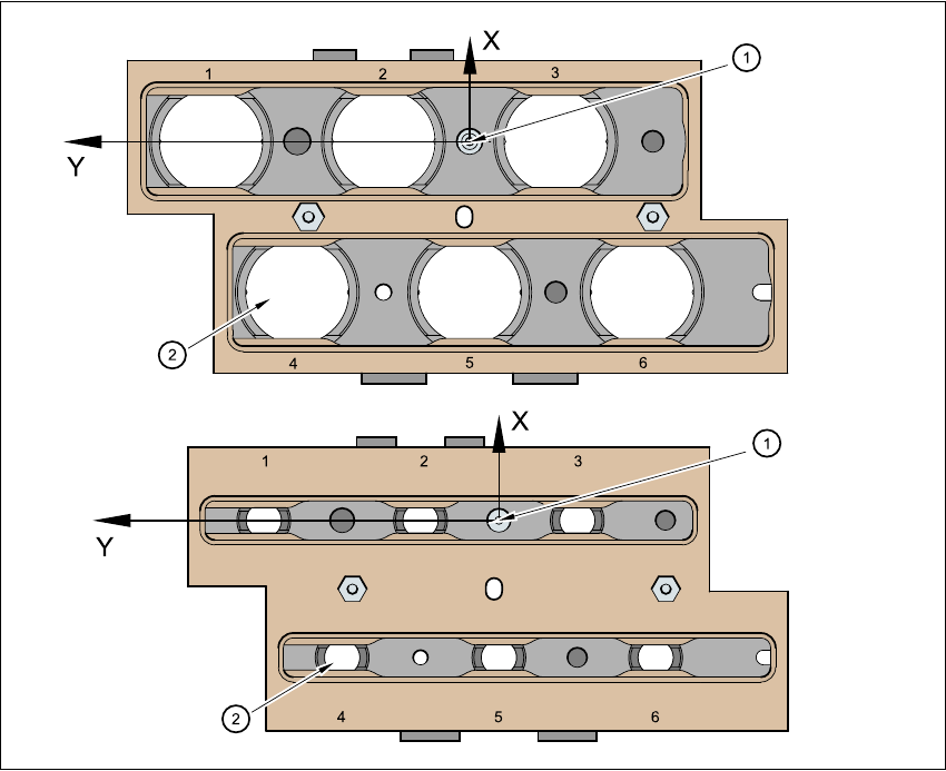 位置 1 及 3 可以安裝 1 個吸嘴更換器 ( 參閱圖 7.1 - 16 ㆗的第 1 及 5 ㊠ )。這表示總計可容納 8 個標