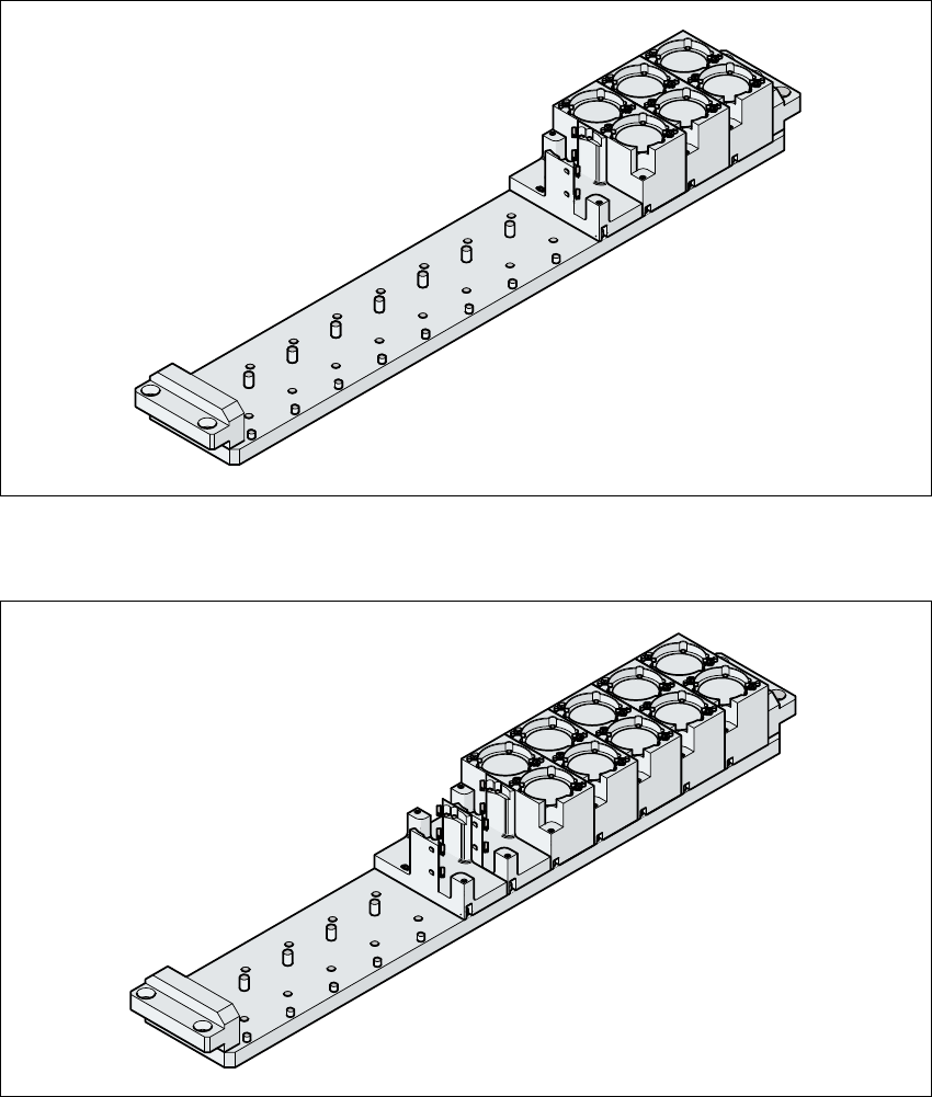 標準吸嘴的吸嘴匣㈲ 1 個定位基準點可用來進行位置偵測,而㈵殊吸嘴 / 夾爪的吸嘴匣則㈲ 2 個定