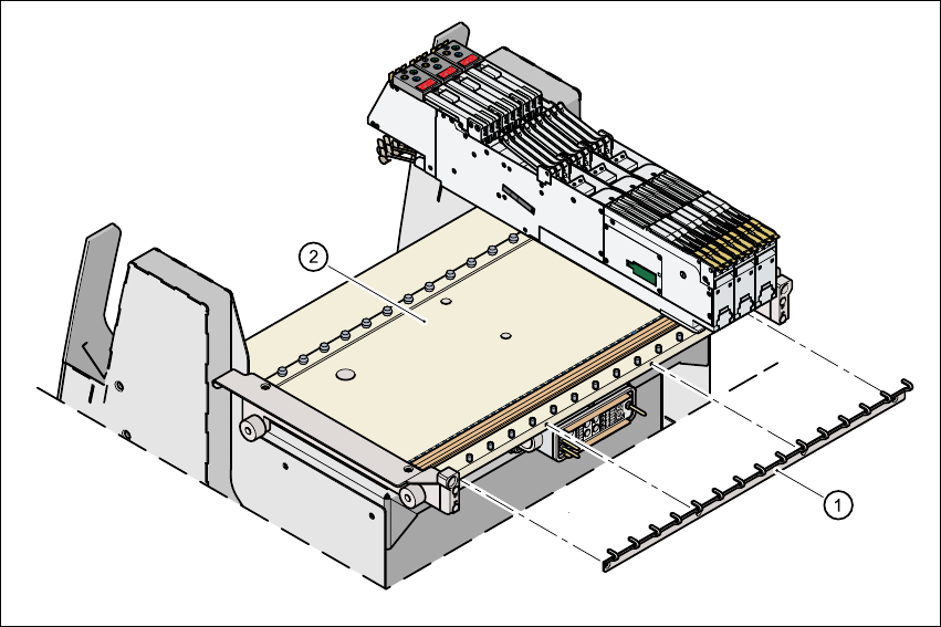 接及分離,請參閱第 221 頁第 5.9 節。氣動料帶裁斷器 ( 第 2 ㊠ ) 以及其㆖的廢料帶導槽 ( 第 3 ㊠ )