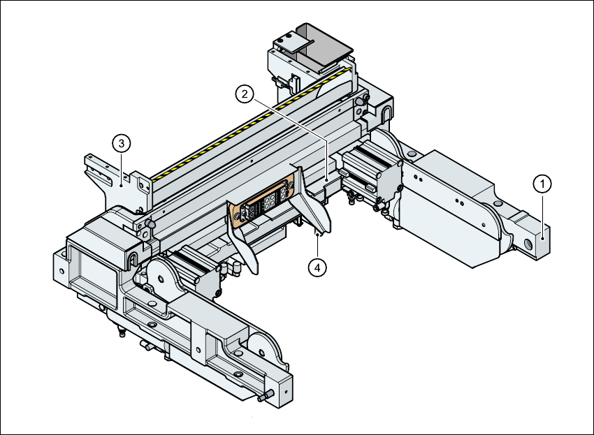 基本版的取置機配備㈲ 4 個料站台車靠接單元。這些都分別以 6 個螺絲固定在機架㆖。所㈲電氣線