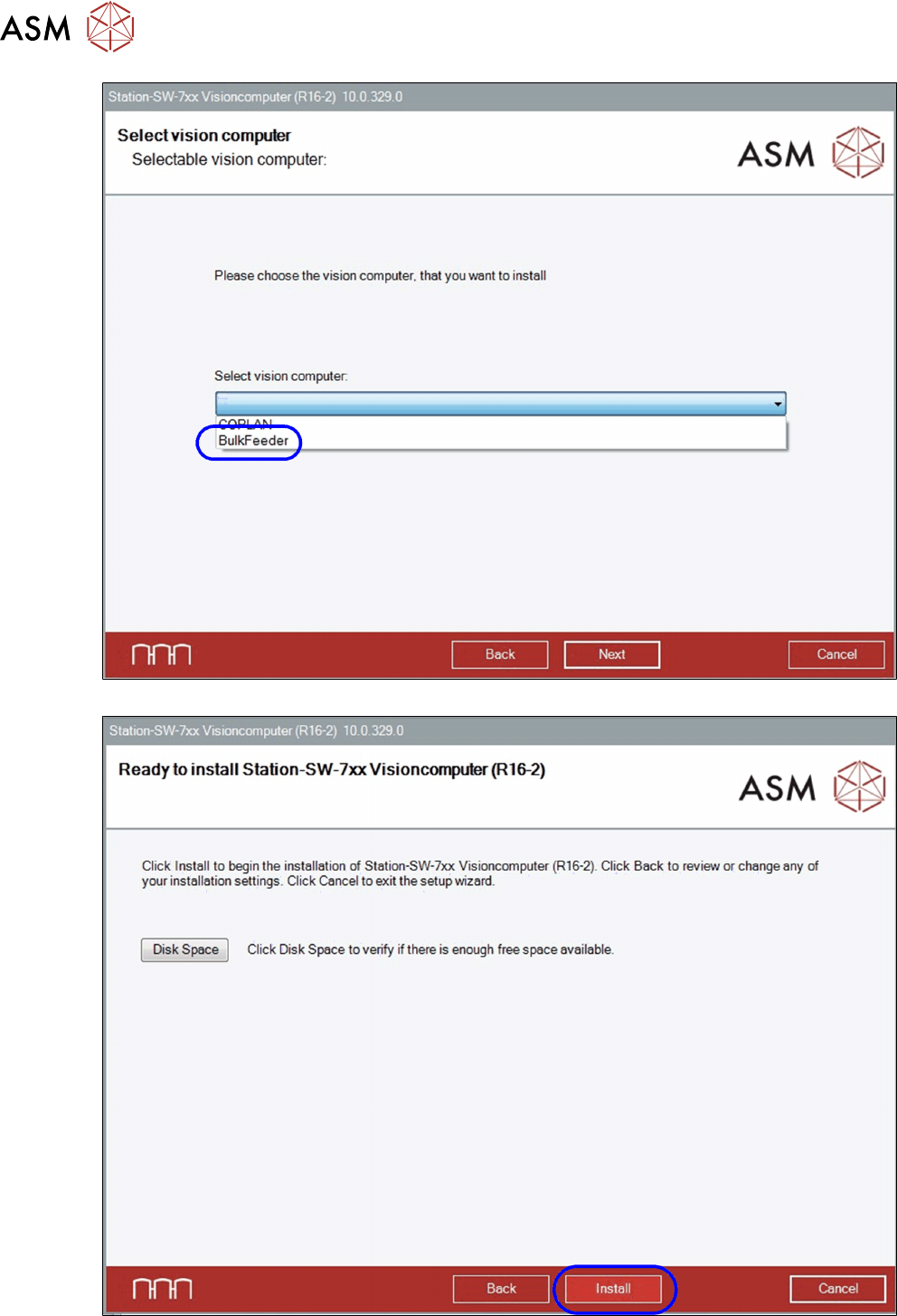 5 Abschließende Arbeiten 5.3 Installation der Stationssoftware 68 Assembly Instructions / Montageanleitung SIPLACE BulkFeeder X Retrofit Kit for SX Series and X Series S 07/2017 ► Wählen Sie den Rechner BulkFeeder aus un…