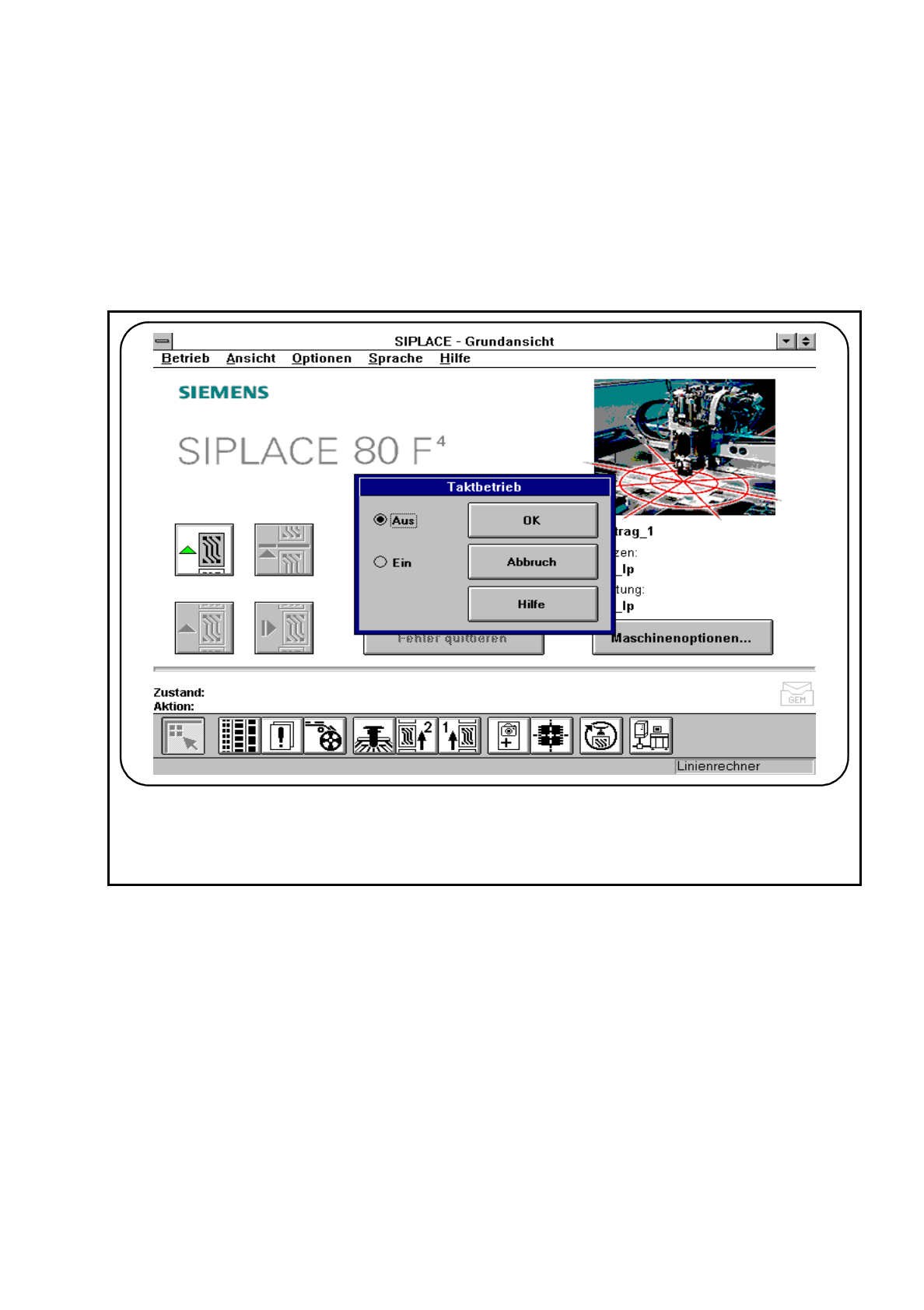 Um das Menü Taktbetrieb des Stationsrechners zu öffnen, klicken Sie im Menü