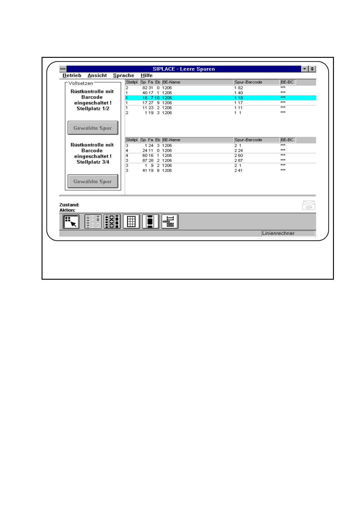 Abb. 3.4.3 Leere Spuren mit „Rüstkontrolle mit Barcode“