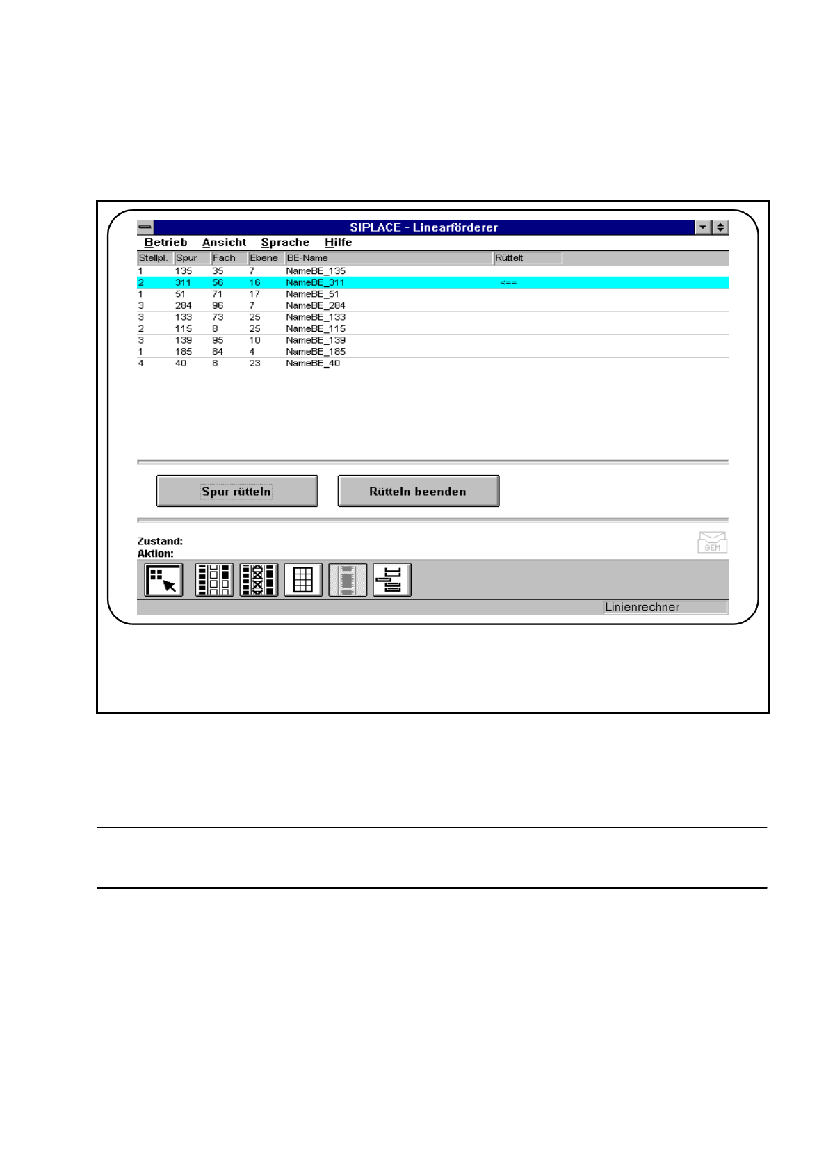 Beim Nachfüllen von Linearförderern können Sie den jeweiligen Linearförderer anwählen und rütteln.