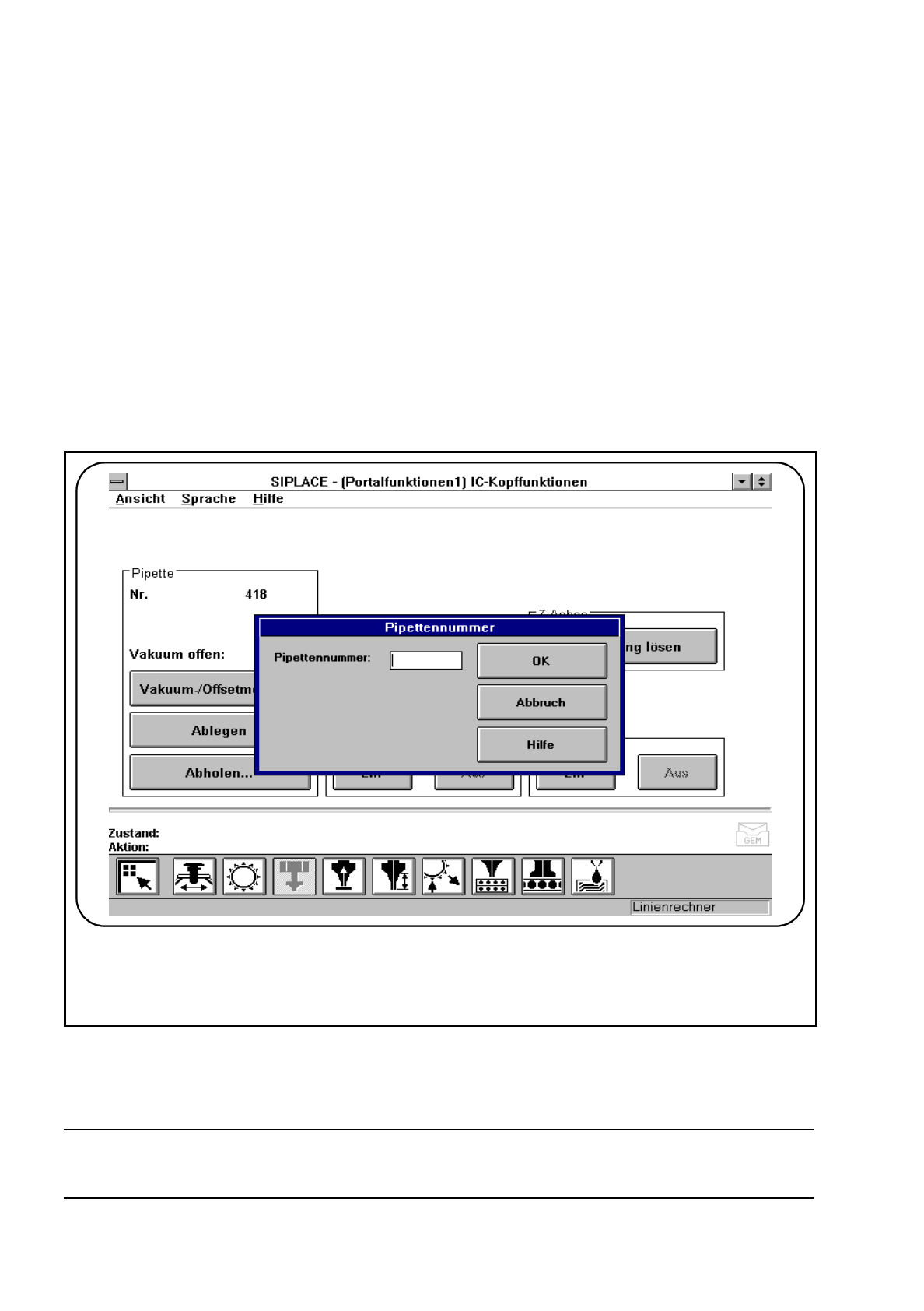 Geben Sie die Nummer der abzuholenden Pipette in das Eingabefeld des Eingabefensters ein.