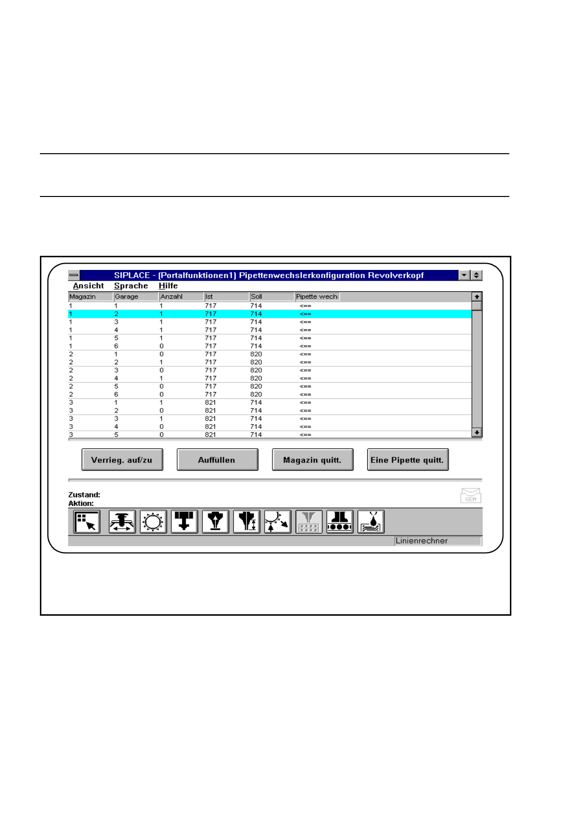 Die Pipette muß vom Linienrechner vorgegeben sein