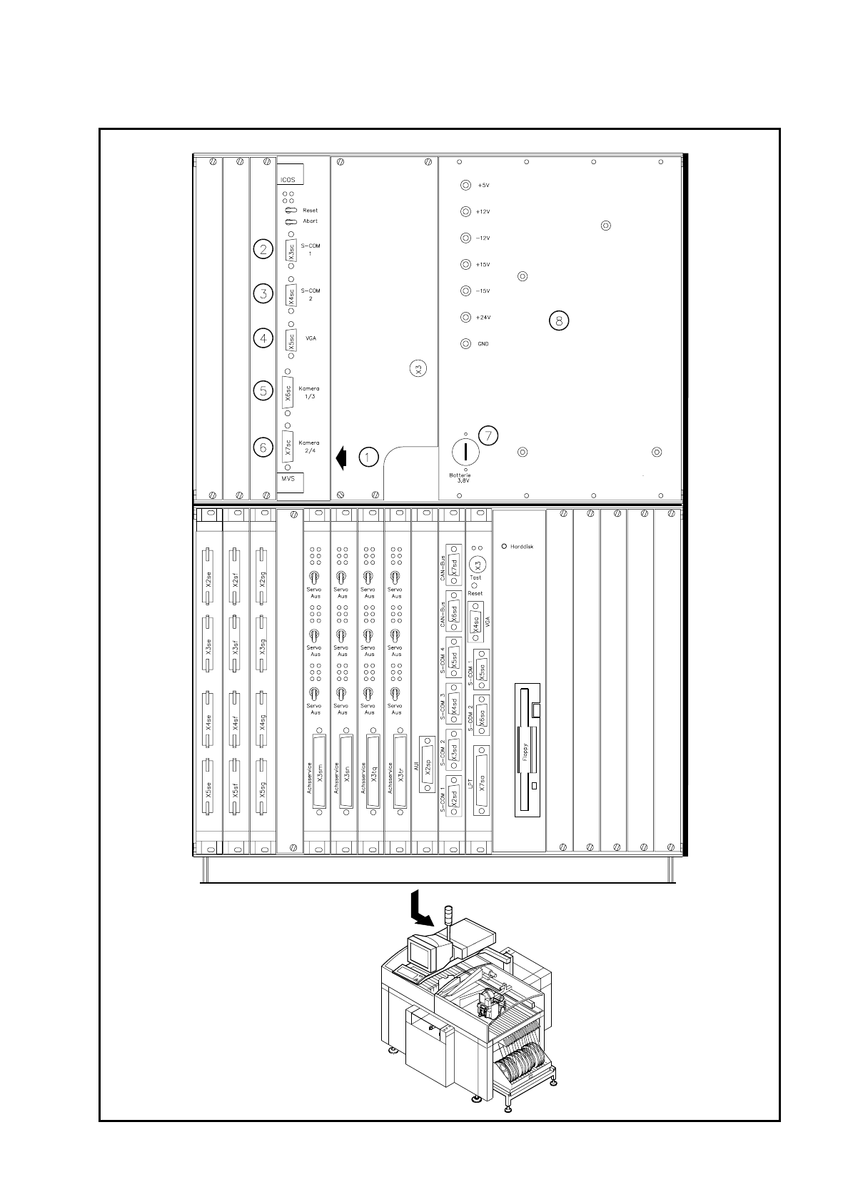 Die Auswerteeinheit (ICOS-MVS - System), im Steuereinschub des Automaten untergebracht (siehe Abb.