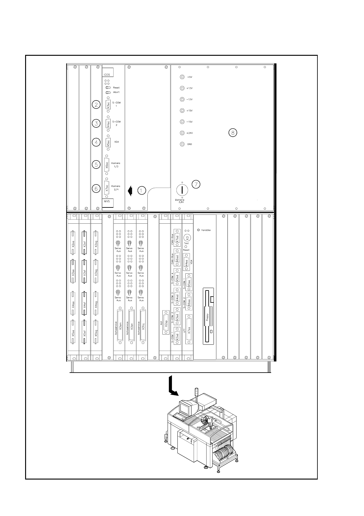 Die Auswerteeinheit (ICOS-MVS - System), im Steuereinschub des Automaten untergebracht (siehe Abb.