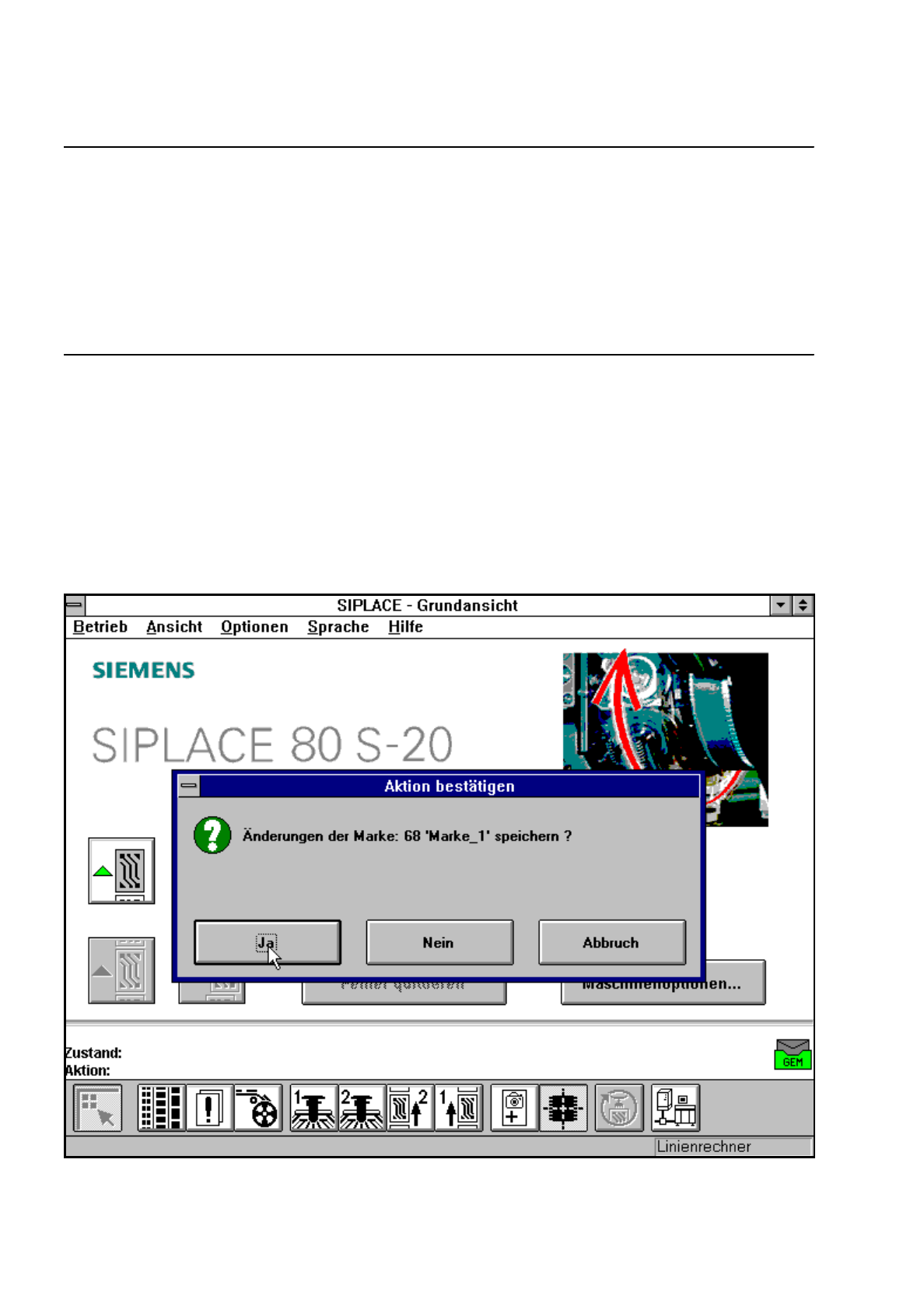 Betriebsanleitung SIPLACE 80S-20/F4/F4-6 5 Visionfunktionen Ausgabe 07/97 ab Softwareversion SR.403.xx 5.5 Marke teachen Einric hter 5 - 43 Durch d ie Wahl d er Option ’ Marke s peichern’ veranl assen S ie den St ations …