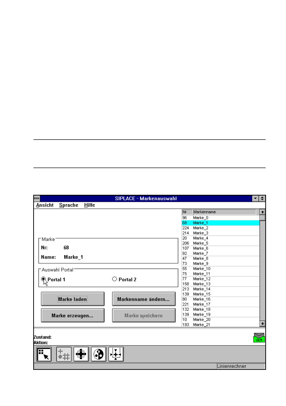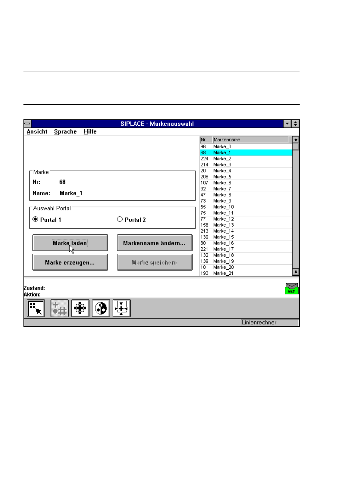 Die Schaltfläche ’Marke laden’ ist beispielsweise nur aktiv, wenn Sie zuvor im Listenfeld eine Marke ange-