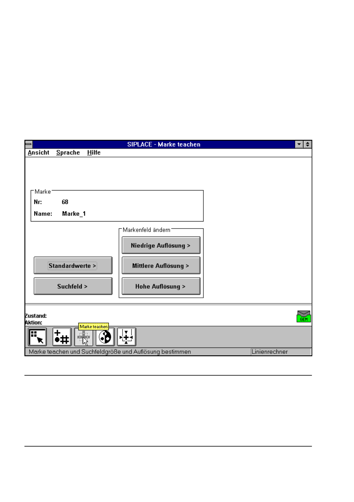 Abb. 5.5.10 Menü ’Marke teachen’, Videobild ’Teachen mit Standardwerten’