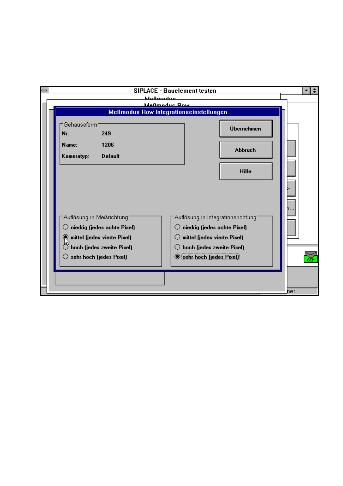 Haben Sie die Schaltfläche ’Integrationseinstellungen’ angeklickt, erscheint das Menü ’Meßmodus Row Inte-