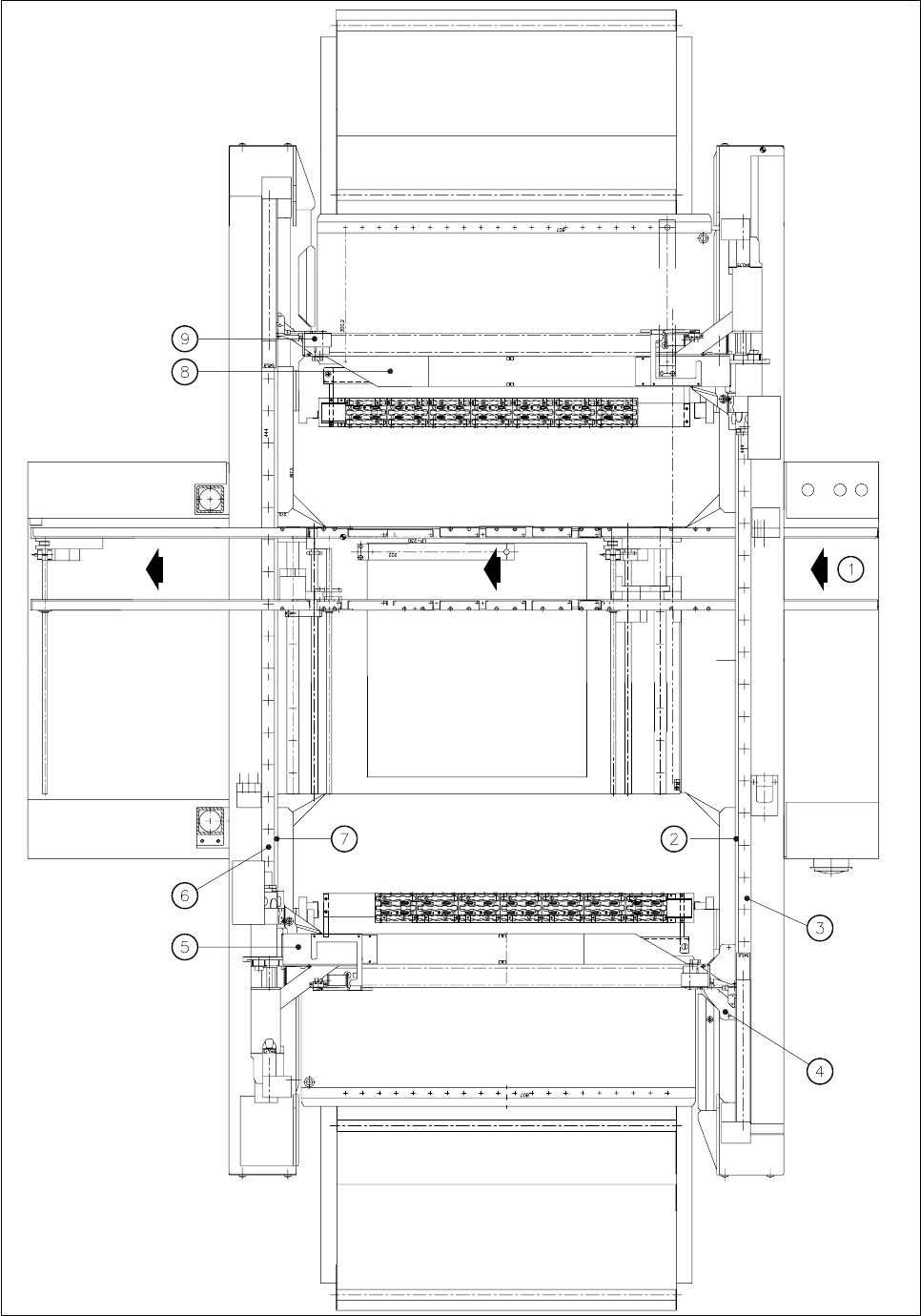 -6 Automat ist eine Einportalmaschine. Sein X-/Y-Portal wird als Portal 1 bezeichnet.
